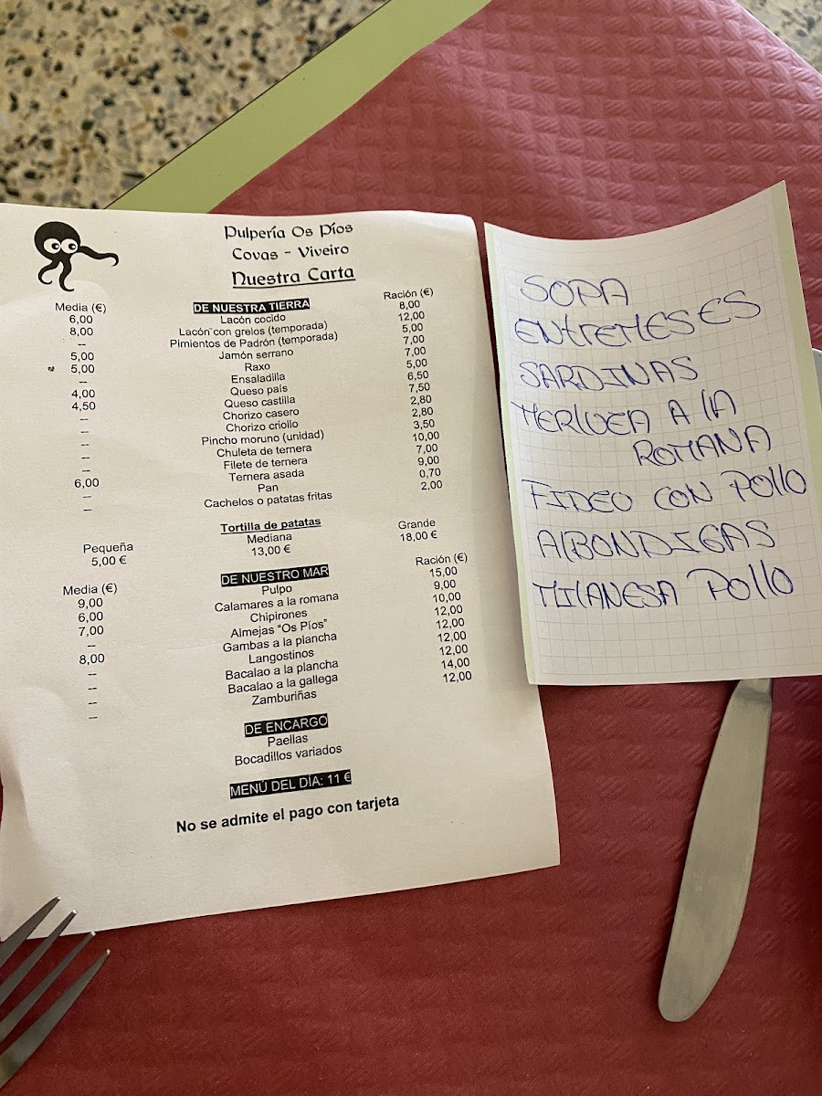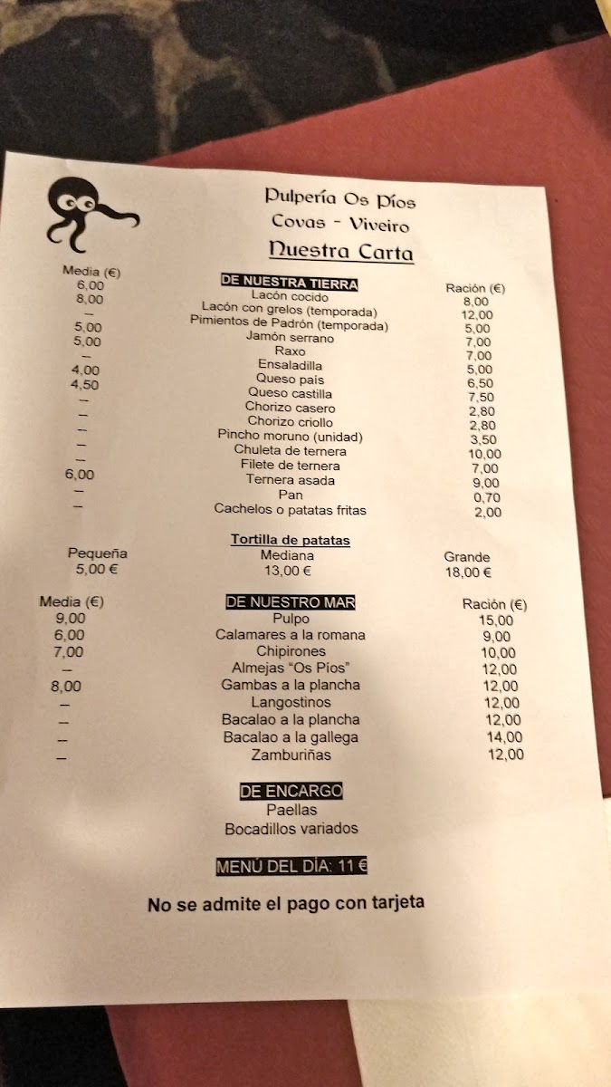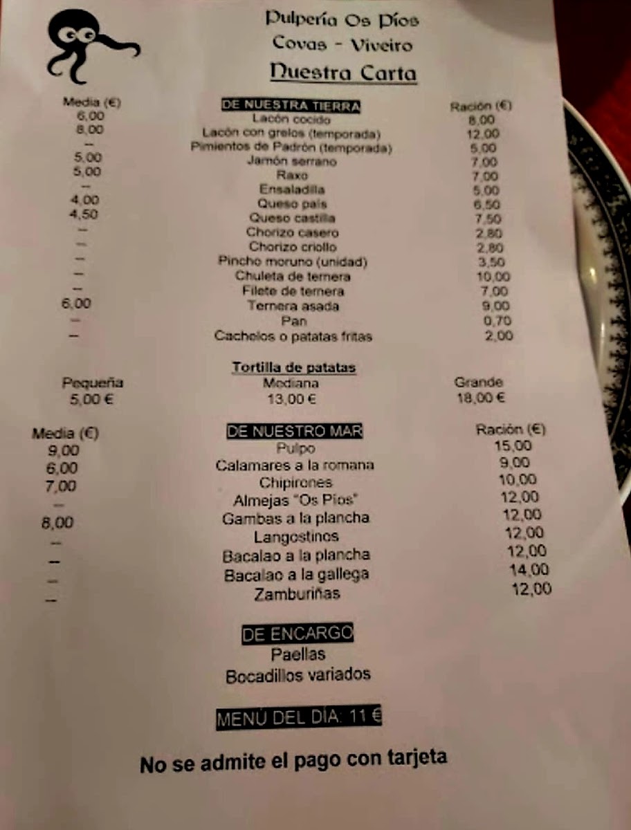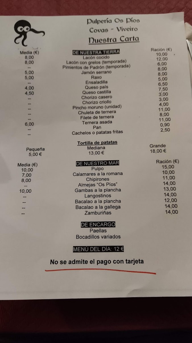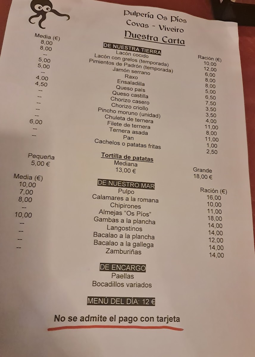 The menu is a delightful reflection of simplicity and freshness, featuring options like tender pulpo (octopus) and savory lacon. The menu del día at just €12 allows you to create your own feast—choose from a variety of starters and mains, complemented by delightful drinks and desserts.